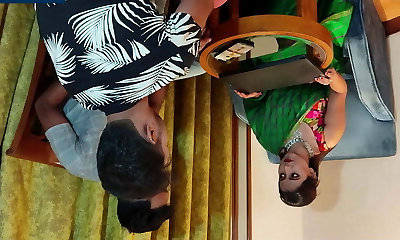 I was eyeing porn video on phone in sofa apartment and holding penis in mitt Tamil aunty Bavana came in shocked I pulled her and ha